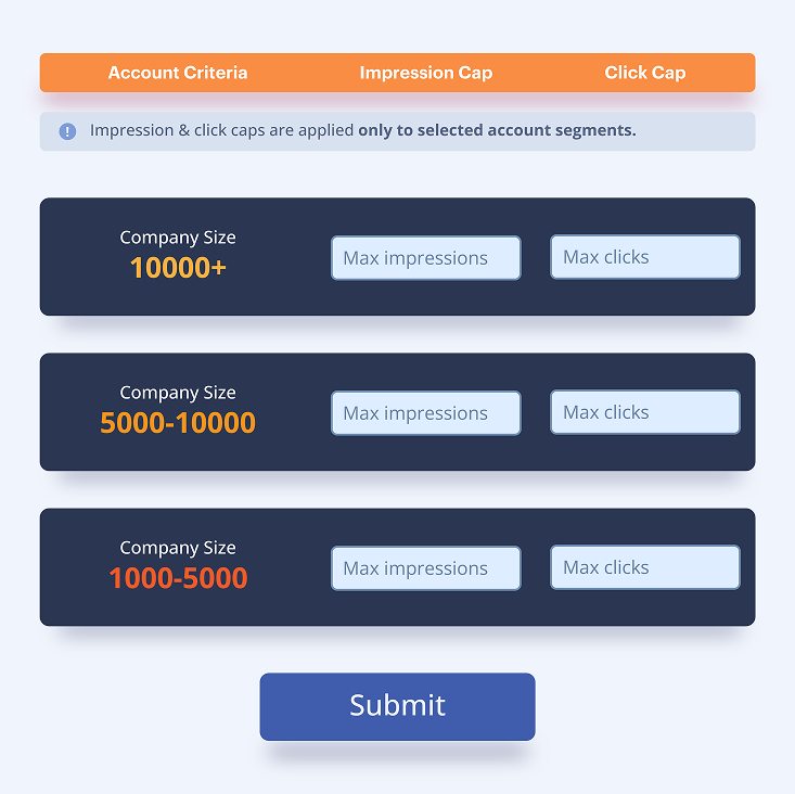 Recotap meets LinkedIn's 300-member requirement by uploading a broader contact set from your target accounts, then suppressing delivery to non-ICP contacts via impression capping and audience exclusion, so your targeting precision is preserved end to end.