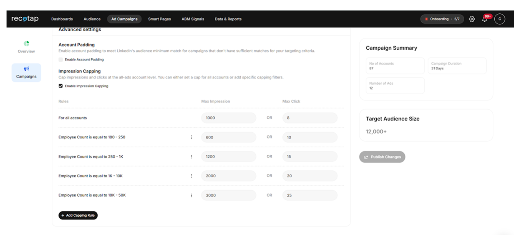 Configureimpression capping rules by account tier to redistribute spend across the full TAL